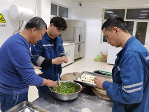 節(jié)日期間,現(xiàn)場職工們一起包餃子、貼春聯(lián),共同烹飪在崗職工的“團圓年夜飯”,為現(xiàn)場帶來十足“年味兒”。