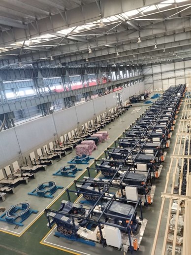 在大規(guī)模生產(chǎn)工作中,有效拓寬生產(chǎn)空間、采用精細(xì)化車間定置管理將極大提升生產(chǎn)效率。生產(chǎn)團(tuán)隊(duì)根據(jù)物資到貨情況及生產(chǎn)進(jìn)程,合理規(guī)劃空間布局,提高空間利用率的同時(shí)兼顧后續(xù)工序便利性。充分利用外場(chǎng)地及庫(kù)房空間,巧思布置,使得大批量存放半成品機(jī)組得以實(shí)現(xiàn)。整齊劃一的機(jī)組,形成了華銳風(fēng)電一道最美的風(fēng)景線。