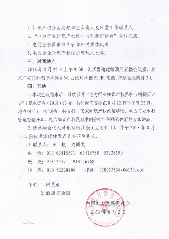 關(guān)于召開中國電力發(fā)展促進(jìn)會知識產(chǎn)權(quán)分會成立大會的通知
