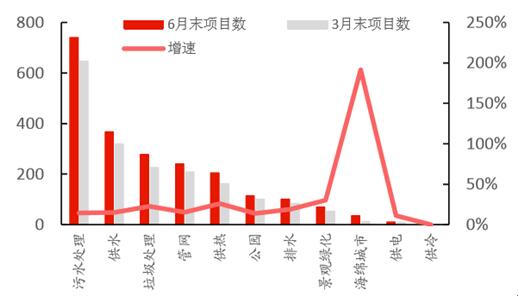 PPP在2016形成了熱點,截止2016年6月末,PPP全部入庫項目數(shù)量達9285個,總投資額達10.6萬億元;而環(huán)保方向的大概有1.4萬億元,在全行業(yè)中占比約13.2%;其中市政環(huán)保方向項目達2043個,較一季度末增長了322個;總投資金額達8919億元,增長了1633億元,增幅為22.41%。之所以舉足輕重,是因為市政環(huán)保類項目基本有相對成熟的盈利模式,在運營中能產(chǎn)生現(xiàn)金流,在PPP中屬于優(yōu)質項目。
