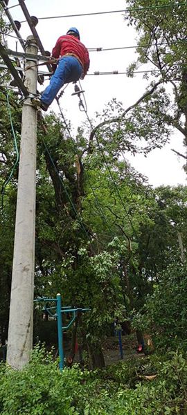 中國(guó)電力網(wǎng)訊  5月15日17時(shí)32分,雷暴天氣造成廣西富川縣朝東鎮(zhèn)、城北兩個(gè)鎮(zhèn)10千伏民主線等3條線路受損停電。接到了故障緊急搶修電話后,南方電網(wǎng)廣西新電力集團(tuán)富川縣公司朝東供電營(yíng)業(yè)所分成兩個(gè)搶修小組趕赴故障現(xiàn)場(chǎng)開展搶修工作。搶修人員通過巡查確定了故障點(diǎn)并立即開展搶修。在故障搶修現(xiàn)場(chǎng),趁著雨量減小的有利時(shí)機(jī),在確保安全的前提下,搶修人員分工合作,有條不紊的開展著搶修工作,有的人員將倒在線路上的樹木運(yùn)離現(xiàn)場(chǎng),有的人員登桿作業(yè)接線換瓷瓶。通過大家的共同努力,于5月16日晚20時(shí)46分完成搶修任務(wù),恢復(fù)了近5000個(gè)用電戶供電,以實(shí)際行動(dòng)踐行了“人民電業(yè)為人民”的宗旨。