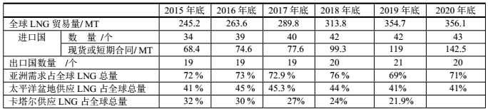 2015~2020年全球LNG關(guān)鍵數(shù)據(jù)