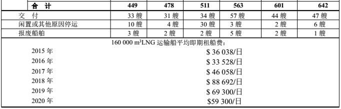 截至2020年底,有642艘運(yùn)輸船,包括43艘FSRU和58艘儲(chǔ)罐<50 000 m3運(yùn)輸船。