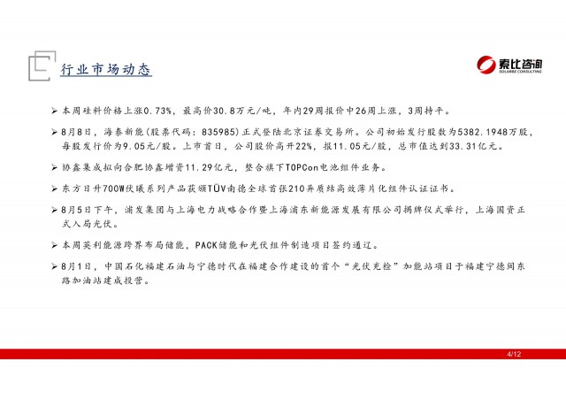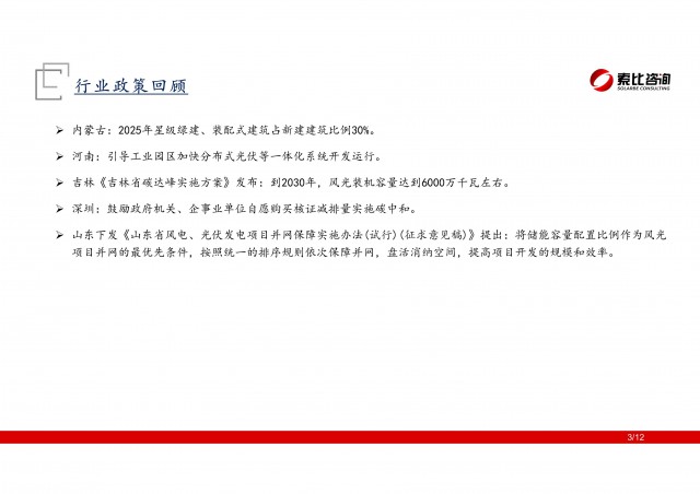 光儲(chǔ)投資周記系索比咨詢與買方機(jī)構(gòu)合作的日常投研回顧。每周除了簡要回顧光儲(chǔ)賽道政策、產(chǎn)業(yè)動(dòng)態(tài)、索比獨(dú)家重大資訊等產(chǎn)業(yè)信息外,亦對(duì)二級(jí)市場(chǎng)光儲(chǔ)賽道表現(xiàn)、共建投資組合表現(xiàn)、賽道重要觀點(diǎn)進(jìn)行跟蹤、分析研判。