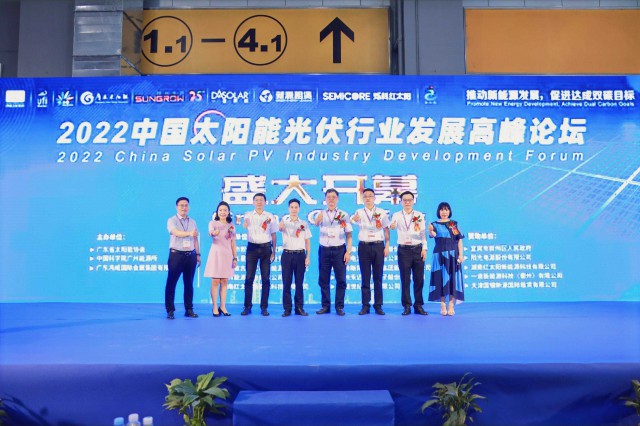 此次展會,湖南紅太陽光伏產(chǎn)品事業(yè)部總經(jīng)理凌付榮(右三)受邀出席2022中國太陽能光伏行業(yè)發(fā)展高峰論壇開幕儀式,與行業(yè)內(nèi)精英共同見證太陽能光伏行業(yè)的這一具有代表性的時(shí)刻。