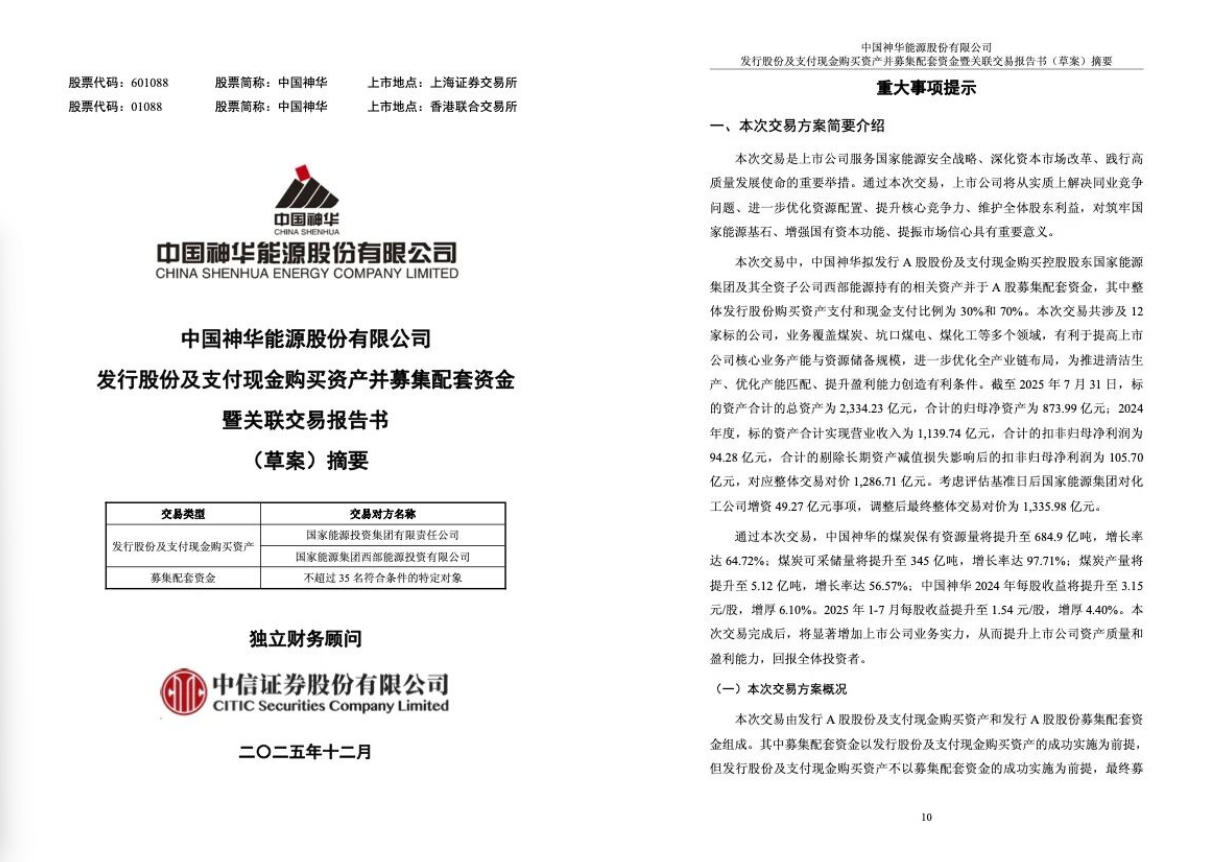 中國神華表示,通過本次交易,將從實質(zhì)上解決同業(yè)競爭問題、進一步優(yōu)化資源配置、提升核心競爭力、維護全體股東利益,對筑牢國家能源基石、增強國有資本功能、提振市場信心具有重要意義。