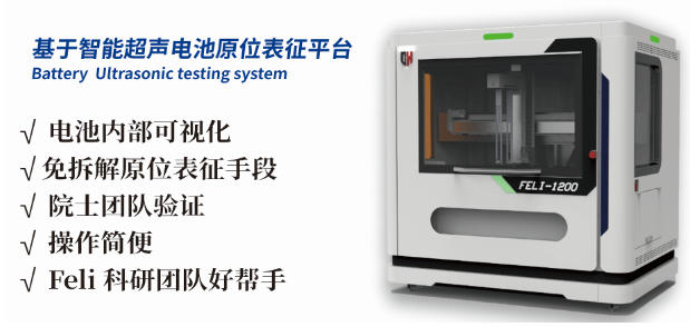 Feli 系列電池超聲波檢測系統(tǒng)是一種無損原位表征手段,廣泛應(yīng)用于電池生產(chǎn)廠、高校、研究院所,以及電池回收利用等領(lǐng)域,可用于電池研發(fā)實(shí)驗(yàn)室,生產(chǎn)工藝室、質(zhì)量部、生產(chǎn)過程的抽檢、出廠檢測、電池安全壽命預(yù)測等部門。