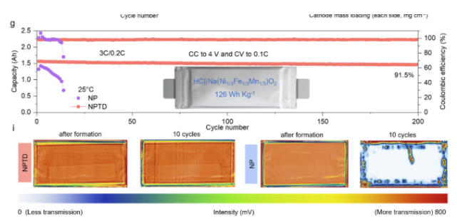 鈉電領(lǐng)域標(biāo)志性成果:北航王華團(tuán)隊(duì)實(shí)現(xiàn)鈉電軟包常溫3C快充,-20°C下0.5C充電,通過超聲成像技術(shù)分析結(jié)果進(jìn)一步證實(shí)了3C快充的安時(shí)級鈉離子軟包電池的安全性及穩(wěn)定循環(huán)。