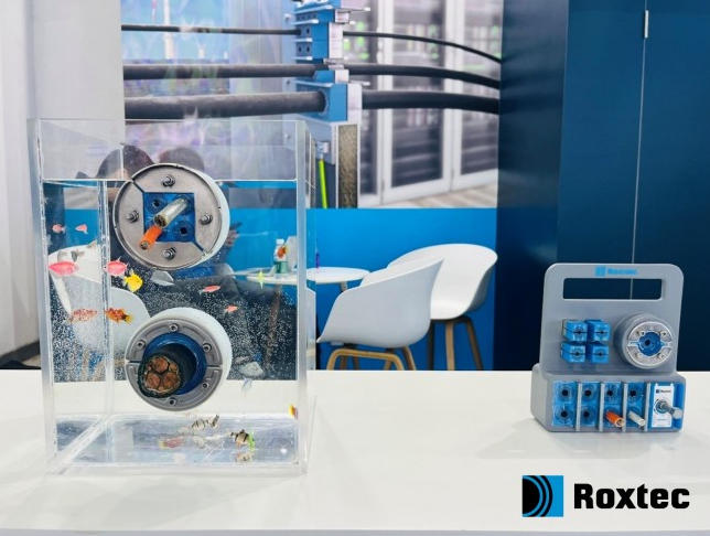展會現(xiàn)場,Roxtec展位以“深遠(yuǎn)海風(fēng)電密封需求”為核心,搭建了聚焦技術(shù)落地的展示場景,其獨創(chuàng)的Multidiameter™(多徑)技術(shù)仍是全場關(guān)注的焦點。Roxtec工程師通過現(xiàn)場演示,清晰呈現(xiàn)該技術(shù)如何通過六種基本規(guī)格模塊、“剝離芯層即可適配不同尺寸電纜與管道” 的核心優(yōu)勢——從單根線纜穿隔到不同規(guī)格的電纜和管道同框密封,大幅簡化設(shè)計與運維流程。